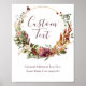 Rústico y elegante, este letrero de texto personalizado presenta un wreath floral de acuarela, follaje y vegetación. La paleta de colores utiliza colores típicos de otoño como el burgundy, naranja quemada, terracota, verde oscuro, colores de bayas y dorado. Cambie fácilmente todo el texto según sea necesario. Por favor, póngase en contacto con el diseñador para cualquier consulta sobre este diseño.