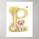 Póster Letter P Gold Spring Nature Monogram Kids Puppy