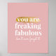 Una impresión motriz rosa y jocoso moderna para tu pared que recuerda que "eres fabuloso, ¡nunca lo olvides!" hace una declaración motivadora de confianza en sí misma en la habitación de un adolescente o en la oficina de la casa de negocios de una mujer. El color de fondo se puede cambiar para que coincida con tu decoración, así como la redacción del tipo de letra del guión para crear tu propio y fabuloso poster de refuerzo de humor.