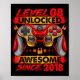 Póster Level 8 Unlocked 8 Year Old Boys 8th Birthday Boy