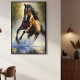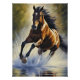 Representación de un caballo salvaje corriendo por un río, capturando el movimiento fluido y la fuerza de la naturaleza, con reflejos en el agua y tonos vibrantes que transmiten energía y libertad.