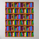 The bright bookshelf background pattern on this beautiful wall poster is perfect for bibliophiles / proud bookworms. The graphic pattern repeats, with about 25 books total. Some lean, some stand up straight, and they're all brightly colored and sitting on a shelf frame with a wood grain look. It's the perfect way to display your love for reading and libraries. It makes a great gift for an avid reader, book collector, English teacher, writer or librarian. "Customize It" to resize this infinitely repeating pattern if you want more or fewer bookshelves on your poster. See matching items in our store!