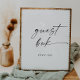 Este letrero de libro de firmas con letra moderna es perfecto para una boda minimalista. El diseño simple en blanco y negro presenta una tipografía de letras industriales únicas con estilo boho moderno. Personalizable en cualquier color. Mantenga el diseño minimalista y elegante, tal como está, o personalícelo agregando sus propios gráficos y arte.