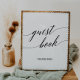 Este letrero de libro de firmas de boda con caligrafía negra elegante es perfecto para una boda sencilla. El diseño neutral presenta un cartel minimalista decorado con tipografía romántica y caprichosa.