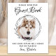 Incluya a su mejor perro, mejor gato y cualquier mascota en su boda con esta señal de libro de invitados de foto de mascota personalizada. Perfecto para los amantes de los perros, y un libro de invitados de perros será un éxito en su boda. Simple moderno blanco con hojas de eucalipto esbozadas en negro.