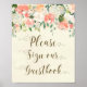 Póster libro de firmas de boda floral de melocotón marfil