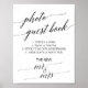Este signo de libro de firmas de fotos con caligrafía negra elegante es perfecto para una boda sencilla. El diseño neutral presenta un letrero minimalista decorado con tipografía romántica y caprichosa.