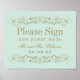 Los giros decorativos y florituras enmarcan este elegante letrero de libro de invitados de boda inspirado en el vintage con monograma. Colores de diseño verde azul menta y dorado antiguo.