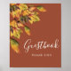 Póster de libro de invitados de boda de otoño con follaje de otoño marrón rústico. Todos los textos están preestablecidos para que puedas personalizarlos fácil y rápidamente con tus propios datos.