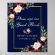 Póster de libro de invitados floral dorado y Borgoña acuarela elegante azul