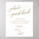 Este signo de libro de invitados de fotos con caligrafía dorada elegante es perfecto para una boda simple. El diseño neutral presenta un letrero minimalista decorado con tipografía romántica y caprichosa de falso foil dorado.