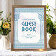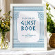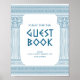 Cartel de libro de invitados con pilares de templo minimalistas y patrón de meandro griego en azul. Perfecto para sus bodas, compromisos, fiestas de graduación, aniversarios, guardar fechas, despedidas de soltera y cumpleaños con temática de la antigua Grecia o la antigua Roma.