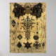 La página del libro mágico con demonios diabólicos y símbolos malvados en el viejo papel texturizado fondo.