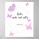 Besos de lila morada y mariposa rosa y bebé desea una invitación a la ducha de bebé. Invitación a un chica para una ducha de bebé con mariposa. Elementos coincidentes disponibles.