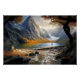 Get ready to be transported to a natural paradise where earth, water, and sky merge in perfect harmony! This majestic valley is dominated by imposing mountains, their faces covered in snow and rugged rocks, while a crystal-clear lake reflects the golden hues of autumn. A winding river snakes through the shore, surrounded by stones and rustic vegetation, and a solitary figure observes the horizon, symbolizing human connection with nature. Vibrant colors and rich textures create a mystical and inspiring atmosphere – perfect for those who want to bring the essence of freedom and wild beauty into their home!