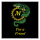 El caprichoso lagarto mexicano que abraza el monograma de sol tribal. El estallido se hizo en naranja y la llama amarilla en el medio es una M, la M es corta para monograma y puede ser personalizada. El reptil está colgado en un abrazo amoroso de la fuente de calor. Las escalas verdes se han simplificado un poco para poder ver mejor en pequeñas zonas de impresión.