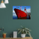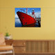 Un poster con una foto del barco de luz en Cardiff Bay, que ahora se usa como iglesia, envía un tipo de luz diferente. El Hull es un bonito rojo vivo que contrasta con el azul del agua y el cielo.