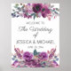 Elegante lilac y plum púrpura acuarela floral boda bienvenida poster / banner