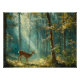 Este cuadro retrata un bosque tranquilo donde un venado joven pastorea tranquilamente, rodeado de vegetación exuberante. La luz del sol se filtra a través del denso dosel, proyectando suaves rayos dorados sobre el suelo del bosque, creando una atmósfera tranquila y etérea. Los ricos tonos verdes y de luz dilatada le dan profundidad a la escena, haciendo hincapié en la serena belleza de la naturaleza. El ciervo, con su forma delicada y su abrigo manchado, es un punto de encuentro suave en este santuario de bosques intactos. La composición general transmite una sensación de quietud, armonía y asombro dentro del mundo natural.