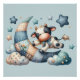Este diseño caprichoso presenta una adorable vaca de patchwork en blanco y negro juguetonamente recostada en una luna creciente cosida con patrones de tela acolchada acogedores. Rodeada de estrellas que brillan suavemente y nubes pastel soñadoras, toda la escena captura un encanto nocturno calmante que es perfecto para temas de guardería o espacios infantiles soñadores. Los tonos suaves de azul, melocotón y crema crean una paleta calmante, mientras que detalles encantadores como estrellas sonrientes y bordados florales añaden un toque acogedor y hecho a mano. Ideal para aquellos que aman los animales kawaii, ilustraciones para la hora de dormir o ternura inspirada en el campo, este diseño combina la nostalgia acogedora con la fantasía digital moderna. Ya sea que estés creando para una fiesta de bebé, decorando la habitación de un niño o curando decoraciones celestes juguetonas, esta encantadora