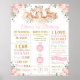 Un toque perfecto para la fiesta del primer cumpleaños de tu pequeña. Este encantador Póster de Estadísticas de Nacimiento y Logros del 1er Cumpleaños con Animales del Bosque y Flores Rosa es perfecto para enmarcar y colocar en una mesa de postres/torta y usar como decoración para el cuarto del bebé después. ¡Genial como accesorio de foto para fotos de cumpleaños muy especiales y memorables! También hace un regalo maravilloso y único.