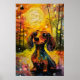 Póster Lindo cachorro dachshund caprichoso en el bosque
