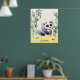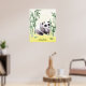Ilustración de un oso panda blanco y negro sentado cerca de bambú verde con estilo acuarela. Es un diseño excelente para los amantes de los pandas o fanáticos de animales súper lindos. Los colores son pastel y parecen una pintura de acuarela. Esta impresión alegrará cualquier dormitorio o sala de juegos de los niños. Se puede personalizar con el nombre de su hijo.