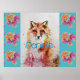 Póster Lindo Zorro Rojo Animal Rosa Verde Rosas