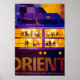 Vintage ocean liner ilustracion de publicidad para Orient Line mostrando a un fiesta nocturno en las cubiertas de un paseo al aire libre en uno de sus barcos con rutas tropicales que navegaban hacia Australia, Nueva Zelanda y el Lejano Oriente a través de los canales de Suez y Panamá.