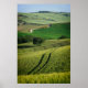 Impresión poster de un paisaje casi abstracto con líneas verdes curvas en los campos de cebada entre Pienza y San Quirico d'Orcia en el valle Val d'Orcia en Toscana, Italia. La decoración es magnífica.