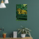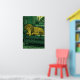 Lion Illustration Print Serene Indoor Setting (Green and Yellow Accents)