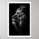 Lion Wall Art Black and White Side Profile with Detailed Mane
