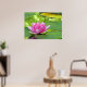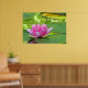 Este poster cuenta con un exquisito lirio de agua rosada que descansa sobre unas colchonetas circulares de lirios verdes. Luminosos reflejos dorados del agua brillan entre las almohadillas de este precioso estanque.