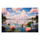 Póster Lirio de agua con nubes rosas reflexionando sobre