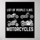 Póster List Of People I Like Motorcycles Funny Rider &