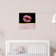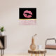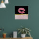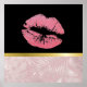 Un poster con la mitad inferior compuesta por un moderno patrón de hojas tropicales de oro rosa a la moda. La mitad superior tiene un fondo negro con un borde de gradiente dorado entre ellos, dentro están los labios purpurinoso rosados.