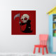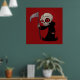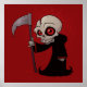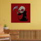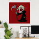 Ilustracion de personalizado vectorial de un pequeño pardo de pañal con los ojos rojos sosteniendo una guadaña.