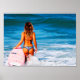 A shapely surfer girl with her pink board headed into the waves for a day of fun.