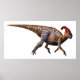Parasaurolophus ("lagarto casi creíble"), descrita por primera vez en 1922, era un dinosaurio que vivía al final del período cretácico, hace unos 70 millones de años, en lo que ahora es Norteamérica. Era un dinosaurio hadrosaurid, una familia diversa de animales comedores de plantas con cráneos de formas extrañas. Se reconocen tres especies, basadas principalmente en el tamaño del escudo de cabeza: P. walkeri (que se muestra en esta obra de arte), P. tubice y P. cyrtocristatus, con la mayor medida de aproximadamente 9,5 m (31 pies) de longitud | MARK GARLICK