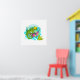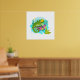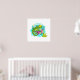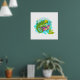 Un poster con un ilustracion adorable de un lagarto tropical verde rodeado de hojas y flores de un color azul turquesa.