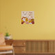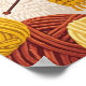 Llama de dibujos animados que lleva una bufanda de punto y sostiene agujas de tejer rodeado de bolas de hilo.