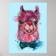 Este diseño presenta un bonito retrato acuático de una llama con salpicaduras de color rosa y azul.