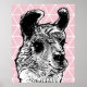 Ilustracion de Llama en blanco y negro con poster de fondo de triángulos blancos. Añade drama de llama a tus paredes en tu habitación, en tu oficina o en cualquier lugar que quieras divertirte un poco. ¡Arreglen a este poster por un divertido poco de arte!
