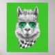 Este diseño presenta un retrato de una Llama con gafas de sol y cuello blanco y negro.