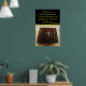 Llámame, y te responderé, y te mostraré cosas grandes y poderosas, que no sabes. Jeremiah 33:3 Versión del Rey James .En este poster. Hay una vieja biblia de aspecto vintage con una línea dorada a través del fondo negro de la imagen y el texto amarillo.