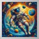 Un astronauta solitario flota en el espacio contra el vívido telón de fondo de la Tierra y numerosos cuerpos celestes. Colores vibrantes y detalles intrincados capturan la vastedad y el misterio del universo.