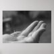 Fotografía en blanco y negro de una lluvia que capta la mano gotea.