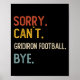 Póster Lo siento, Can 't Gridiron Football Bye Camise