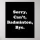 Póster Lo siento, no puedo Badminton, adiós Funny Badmint