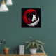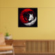 Un diseño hiperrealista que muestra a un lobo yin-yang rojo y blanco con el equilibrio dinámico y los detalles intensos de la poderosa mirada del lobo.